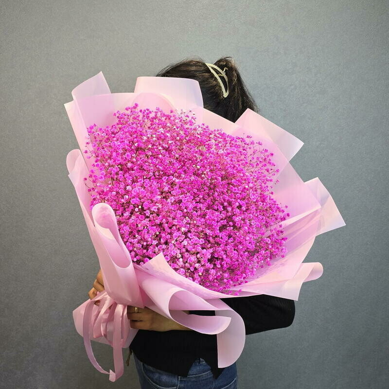 Этот монобукет из розовой гипсофилы — словно облако нежности, спустившееся с небес! Мелкие соцветия, окрашенные в нежно-розовый цвет, создают ощущение лёгкости и воздушности. Элегантная упаковка в пастельных тонах подчёркивает его романтичность. Такой букет подарит ощущение волшебства и наполнит день светом и радостью.