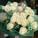 19 белых роз с радужной гипсофилой