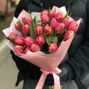 25 розовых пионовидных тюльпанов с оформлением