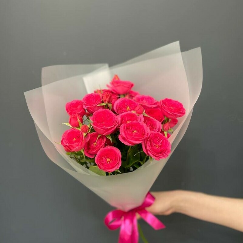 - Монобукет из малиновых кустовых роз