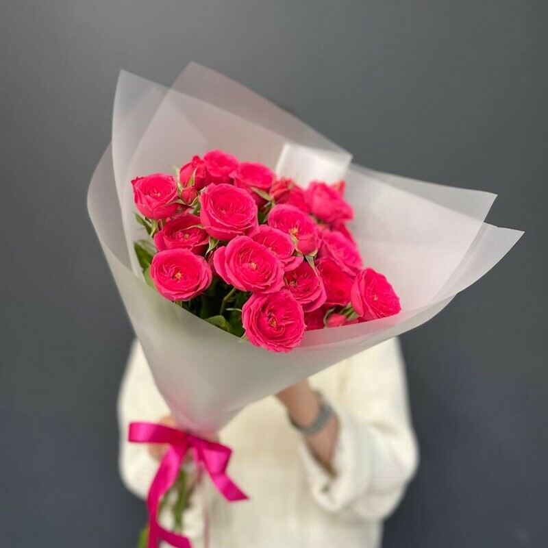 Монобукет из малиновых кустовых роз