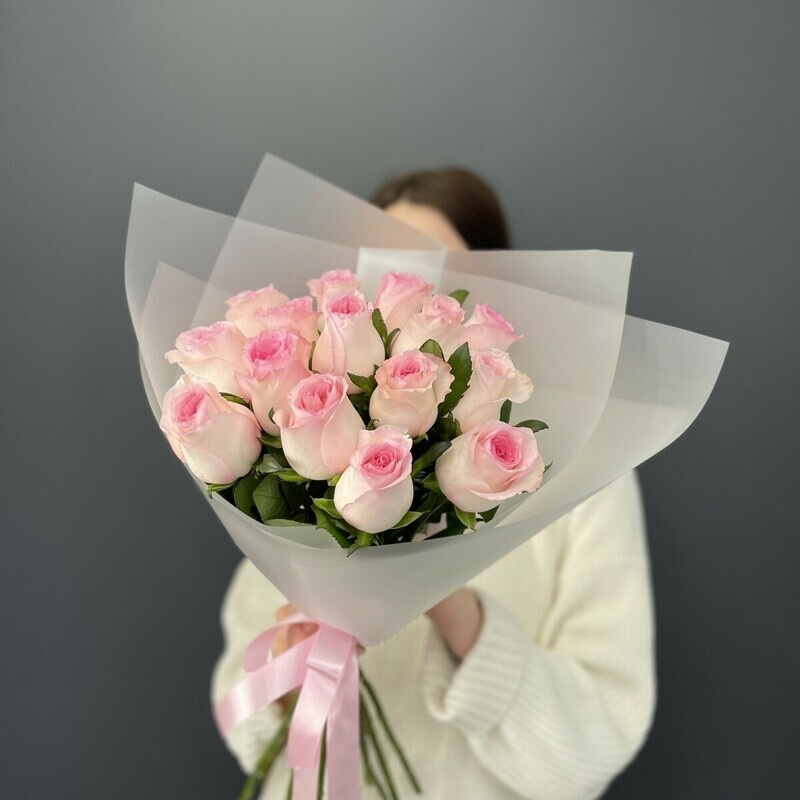 Монобукет из 15 нежно-розовых роз