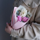 С букетом вы получаете инструкцию по уходу за букетом, подкормку для продления его жизни в вазе. Также букет букет в аквапакете