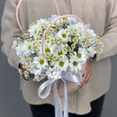 - Цветы в сумочке: из стойких цветов кустовых хризантем и ромашки