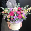 - Коробка с розами и матиолой