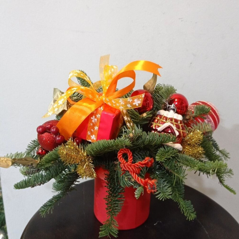 - Композиция из нобилиса и ёлочных игрушек в коробке