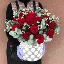 - коробка с красными розами