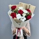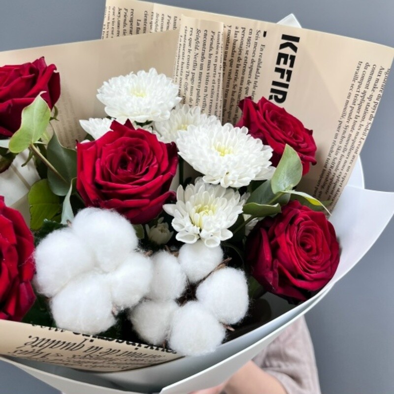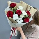 - Букет с красными розами и хризантемой
