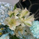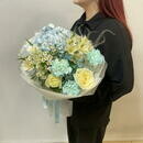 - Букет из голубой гортензии ,белых роз и голубых диантусов