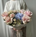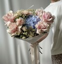 - Букет из голубой гортензии и роз