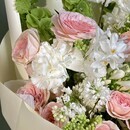 - Букет из кустовых пионовидных роз, нарцисса и сирени