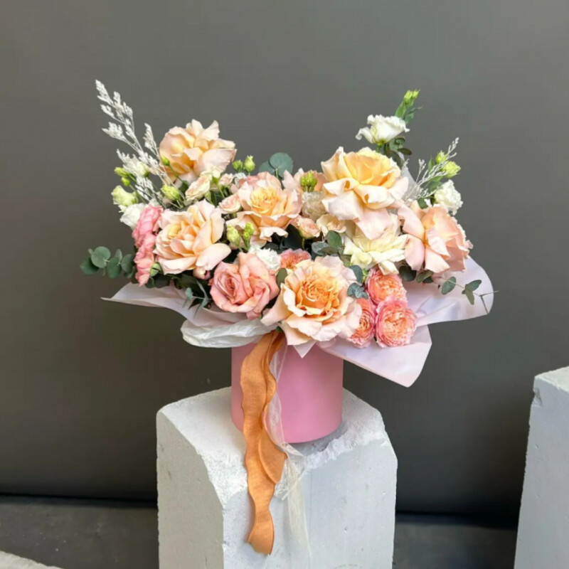 Композиция в нежных тонах в шляпной короке