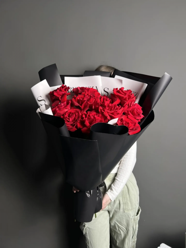 - Букет в дизайнерском стиле с французскими розами