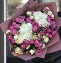 Роскошный букет из гортензии и кустовых роз , стандартный