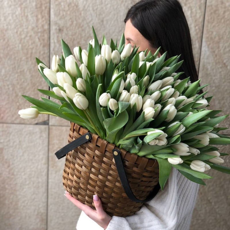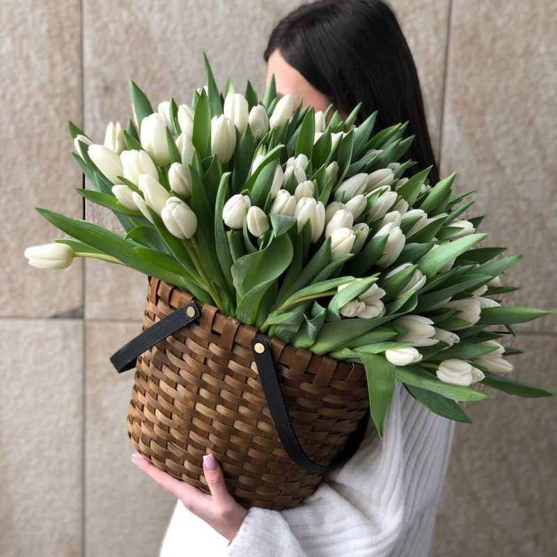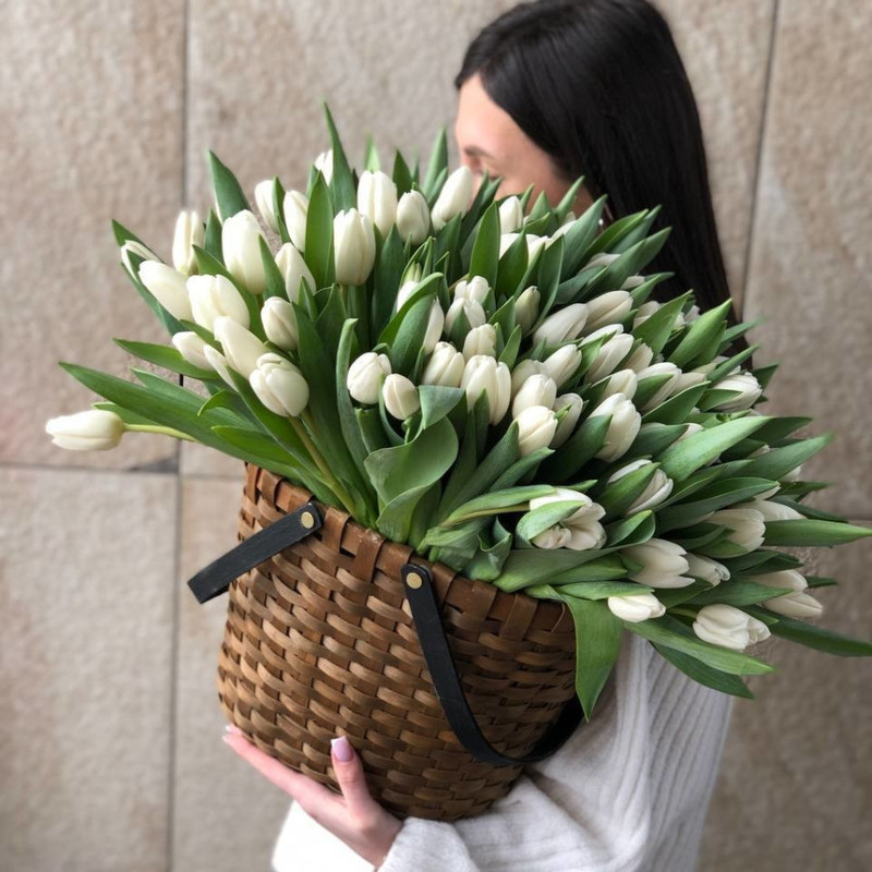 КОРЗИНА БЕЛЫХ ТЮЛЬПАНОВ