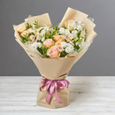 - Нежный букет из кремовых роз, орхидей и альстромерий