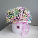 Необычная радужная гипсофилла, нежная, словно облачко, будет радовать свою хозяйку очень долго. Даже подсохнув, она не потеряет свои эстетичные качества и останется украшением дома !