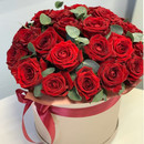 Красные розы с эвкалиптом "Вечная любовь !", стандартный