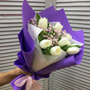 Нежный букет из белоснежных тюльпан и воздушной гипсофилы.
