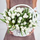 Белоснежные тюльпаны в белой корзине - безупречный подарок для самой капризной принцессы от ее верного рыцаря !
