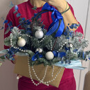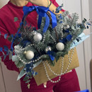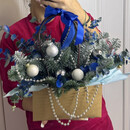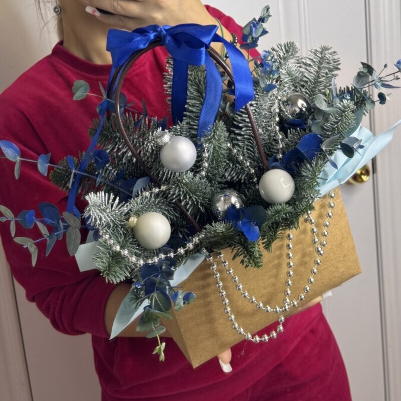 Классика скандинавского Рождества в современном исполнении. Густой нобилис, лаконичный эвкалипт и блеск серебра. Ничего лишнего — только природная красота и праздничный лоск.