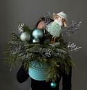 Красная шляпная коробка, новогодней композиции и новогодней девочкой