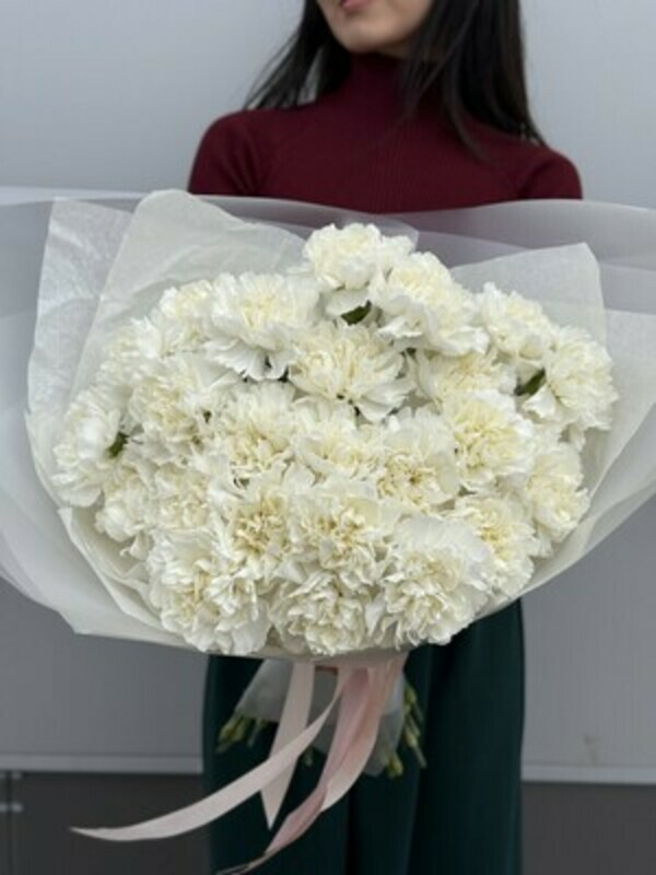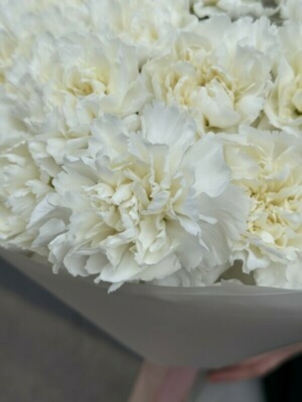 Этот великолепный букет состоит из 25 свежих белоснежных гвоздик, которые создают эффектный и пышный ансамбль. Гвоздики, известные своей долговечностью и яркостью, обладают нежными лепестками с легким бархатистым оттенком, что придает им особую элегантность. Каждая гвоздика в букете аккуратно собрана, чтобы подчеркнуть их красоту и гармонию. Белоснежные цветы символизируют чистоту и искренность чувств, что делает этот букет идеальным подарком для различных случаев — от свадеб и юбилеев до простого выражения любви и заботы.