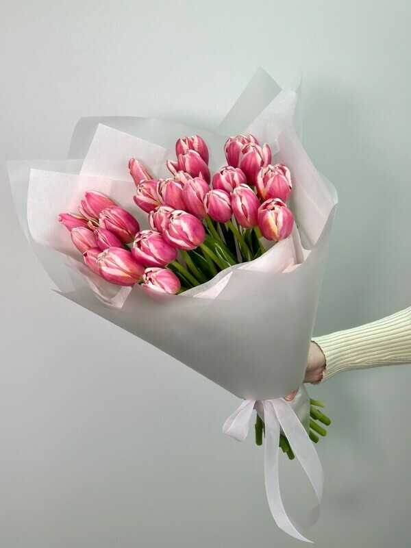 Этот изысканный букет из 25 нежных розовых тюльпанов станет прекрасным подарком для тех, кто ценит красоту и элегантность. Каждое тюльпанное соцветие словно наполнено весенним настроением и яркой энергией. Упакованный в стильную и аккуратную упаковку, он идеально подойдет для поздравлений, признаний или просто чтобы поднять настроение. Пусть этот букет станет символом искренних чувств и красоты!
