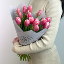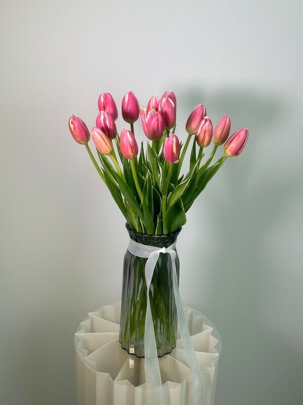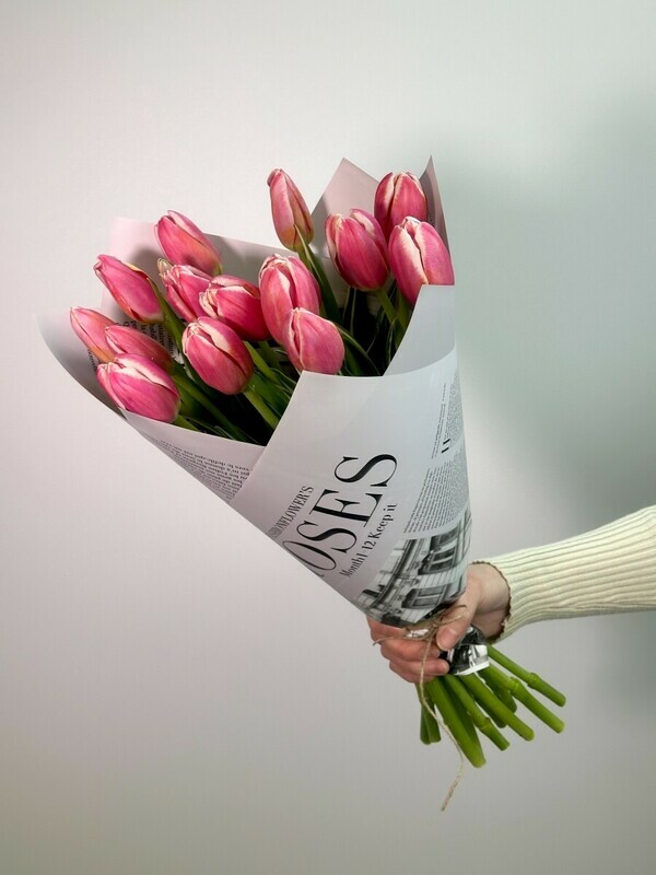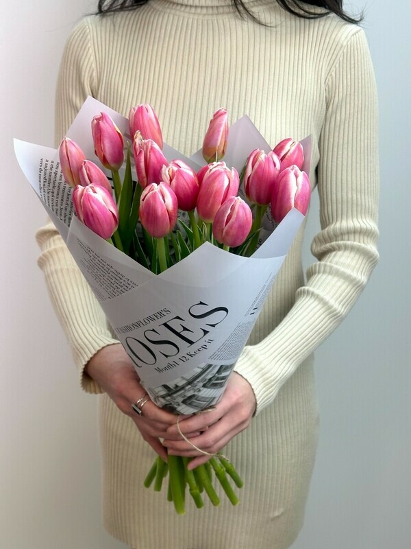 Элегантный букет из 15 розовых тюльпанов в стильной дизайнерской упаковке — это яркое сочетание нежности и изысканности. Каждое цветное соцветие наполняет пространство свежестью и романтикой, а оригинальная упаковка подчеркивает уникальность подарка. Идеальный выбор для выражения чувств, поздравлений или просто чтобы порадовать близкого человека.