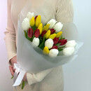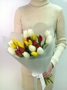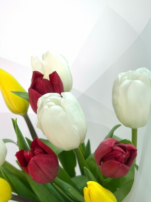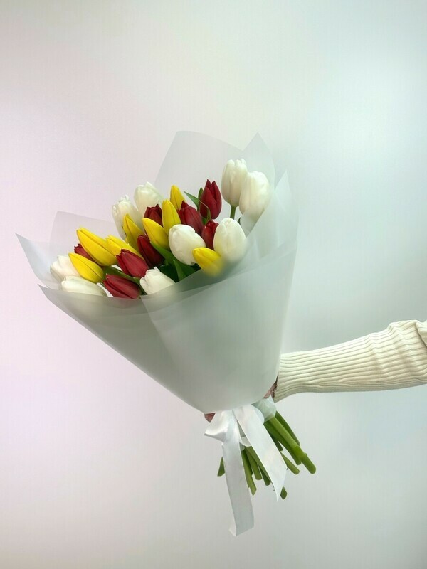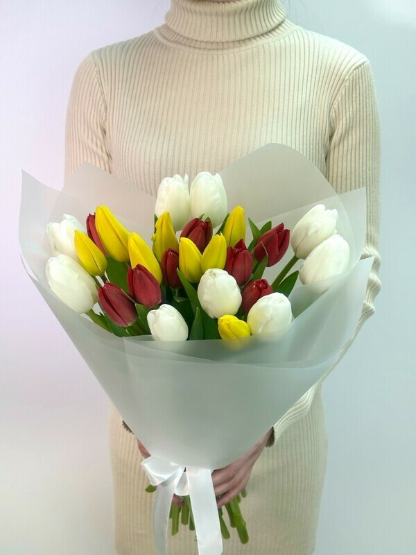 "Букет из 25 микс-тюльпанов в упаковке — яркий и эффектный подарок для любого повода Порадуйте близких или создайте праздничное настроение с нашим букетом из 25 разноцветных микс-тюльпанов, аккуратно запакованных для красоты и удобства. Этот насыщенный цветами и ароматами букет станет отличным украшением интерьера или запоминающимся подарком. Идеальный выбор для поздравлений, романтических жестов или просто, чтобы подарить радость. Закажите сейчас и добавьте красок в каждый день!"