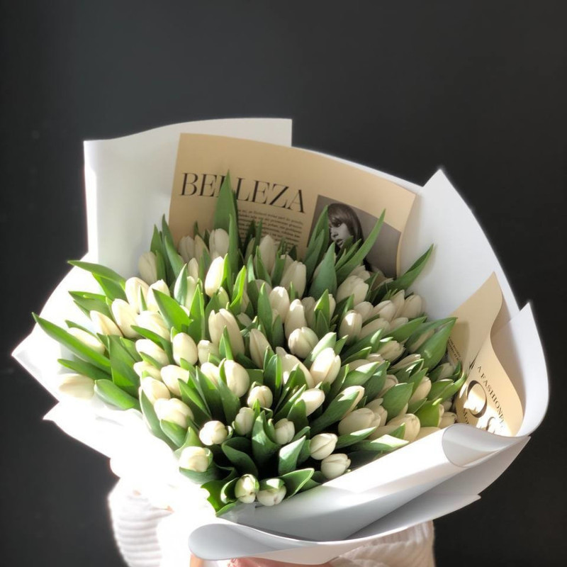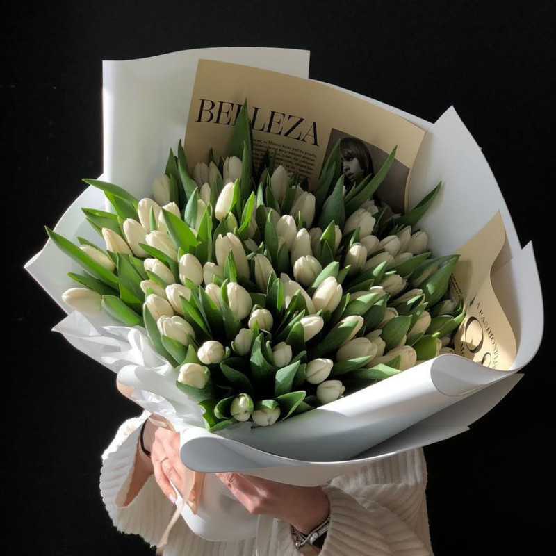 101 белый тюльпан букет