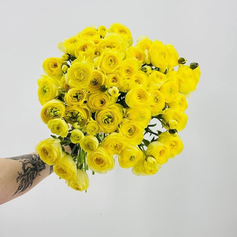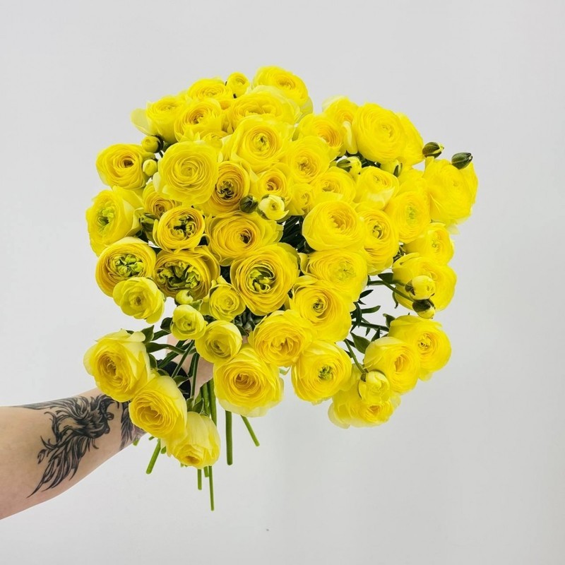 49 жёлтых ранункулюсов премиум. Букет жёлтых лютиков