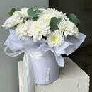 - Цветы в коробке хризантема эвкалипт