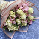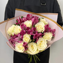 Букет из белых роз в сочетании со стойкой альстромерией будет долго радовать получателя.