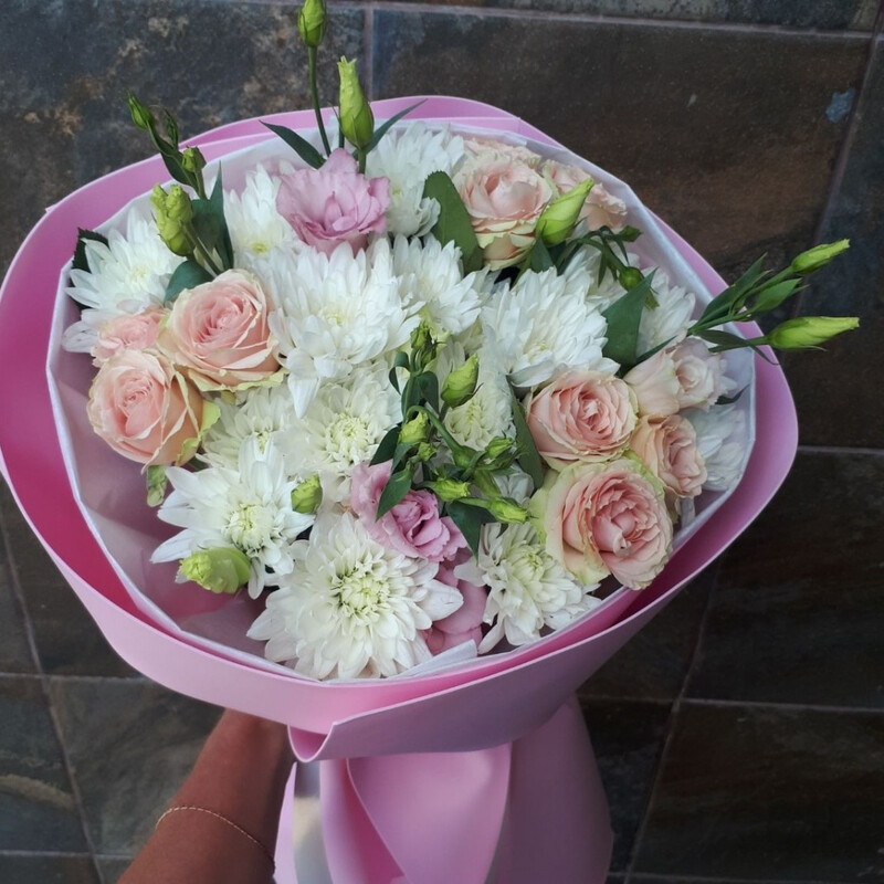 Букет в нежных тонах подарит хорошее настроение и порадует любого получателя!