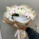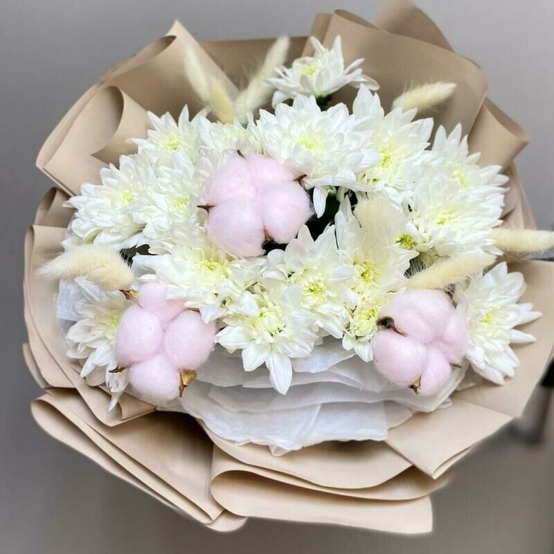 - Букет из хризантемы,хлопка и лагуруса