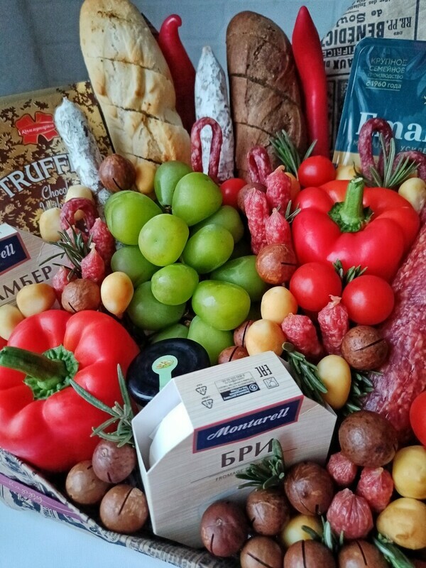 - Подарочный набор с сырами , колбасами и орешками Мужской букет Букет из колбасы