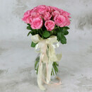 Букет из 21 розовой розы с лентой Кения 40 см.