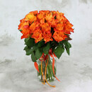 Букет из 21 оранжевой розы с лентой Кения 40 см.