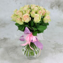 Букет из 21 зелено-розовой розы с лентой Кения 40 см.