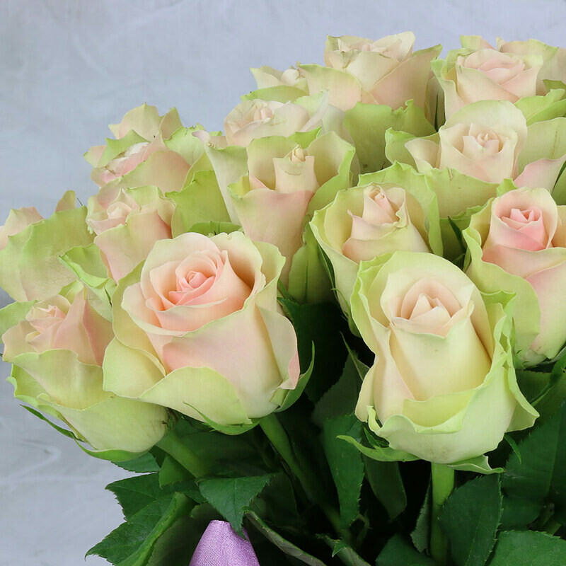 Букет из 21 зелено-розовой розы с лентой Кения 40 см., стандартный