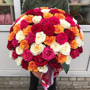 101 роза микс м шляпной коробке