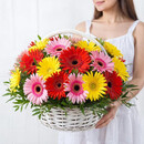51 гербера микс в корзине