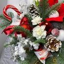 Лаконичная и уютная композиция, которая создаёт праздник в деталях. Всё самое главное о зиме собрано в одной подарочной коробке: ароматные еловые ветки, нежные веточки диантуса и яркие новогодние шары, переливающиеся, как огоньки гирлянды. А рядом настоящий леденец-трость, сладкий символ праздника.