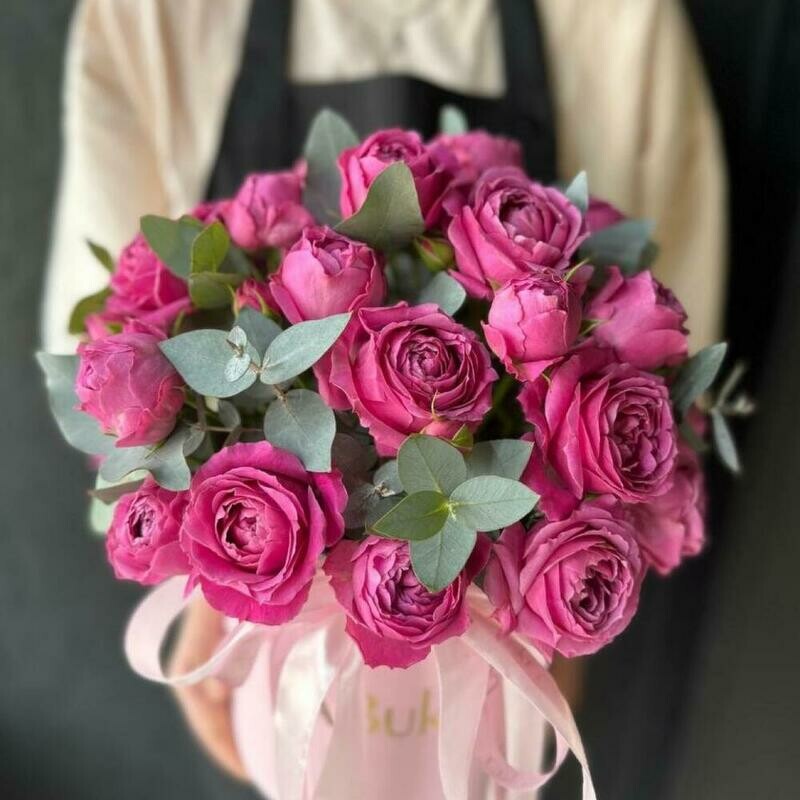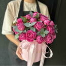 - Пионовидная роза Мисти Баблс в шляпной коробке