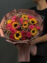 - Букет Пионовидные Кустовые Розы И Подсолнухи
