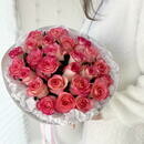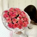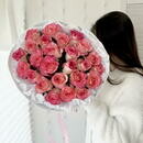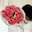 Букет розовых роз 25 штук в дизайнерской упаковке  Размер М, стандартный