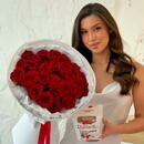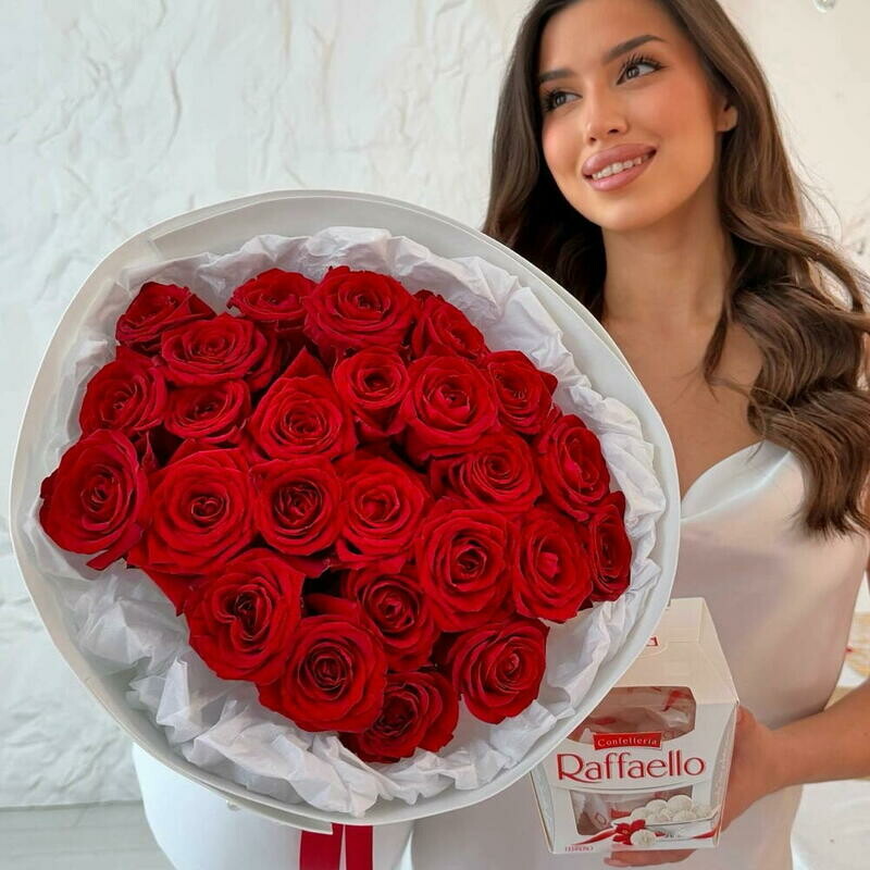 Подарочный набор: букет из красных роз 25 штук + Рафаэлло