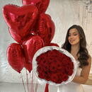 Подарочный набор: букет из 35 красных роз + шары с гелием сердце 9 шт , стандартный