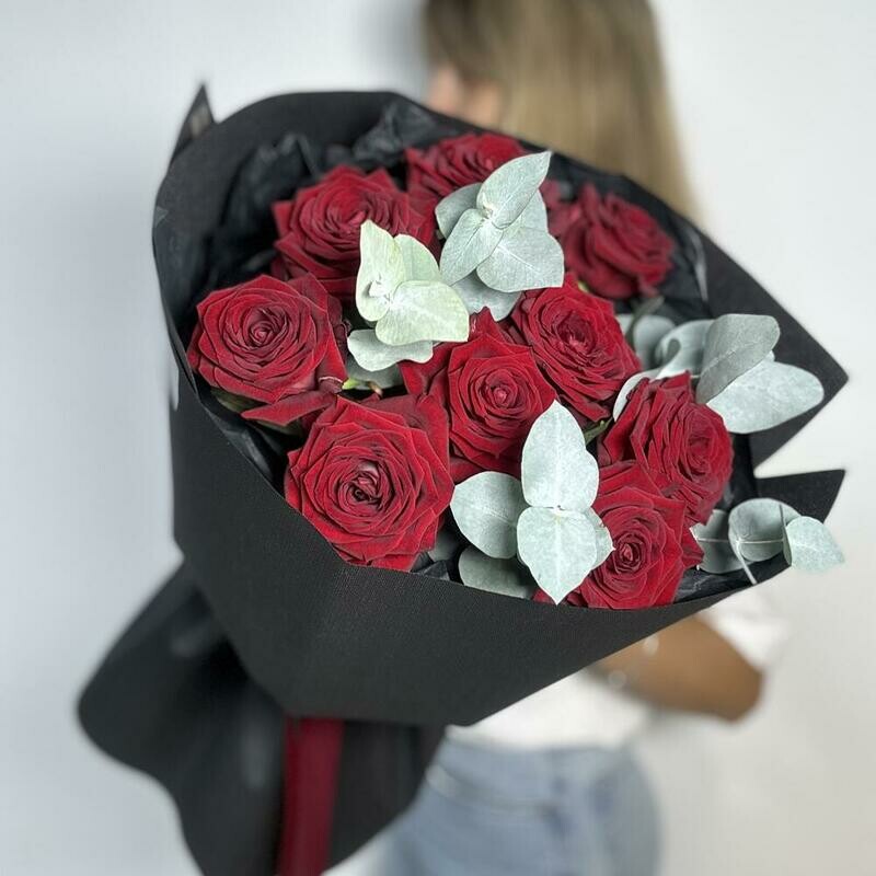 - Букет из красных роз в чёрной упаковке